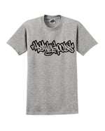 Heavy Goods hollow handstyle t-shirt. White or sports grey t-shirt with black print to front.