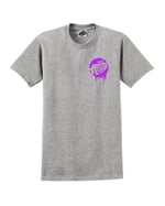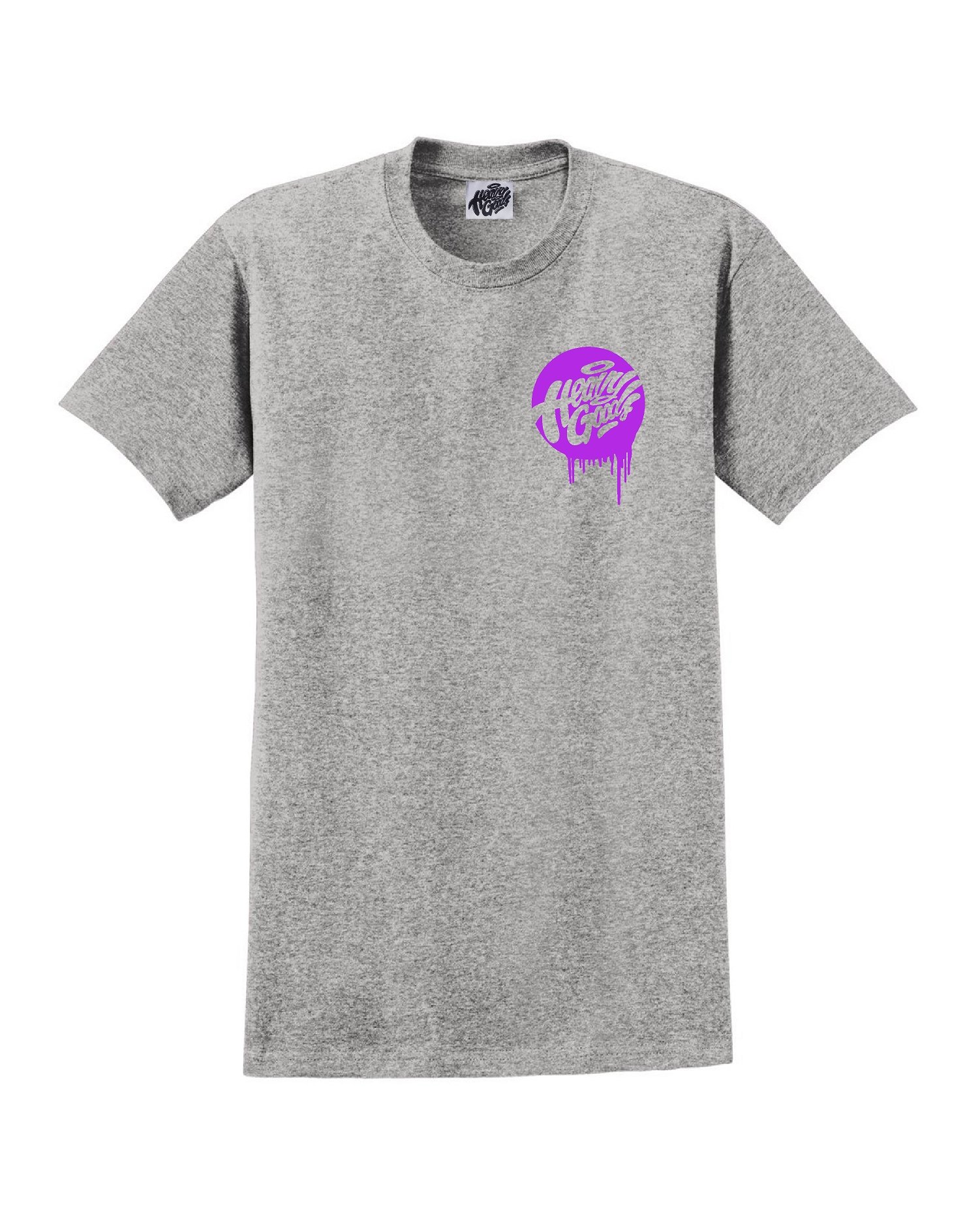 Heavy Goods collaboration tshirt with our dude BACK. Available in 2 colour ways black with pastel green print and sports grey with purple berry print.